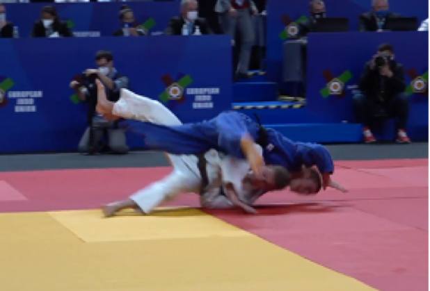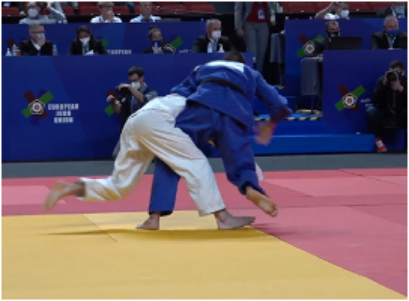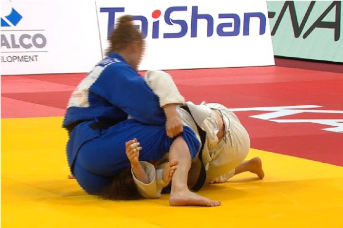 Gripping under the belt in the end phase of a throwing technique is allowed if the opponent is already in ne-waza. If the throwing technique is interrupted, gripping under the belt is a ne-waza action.