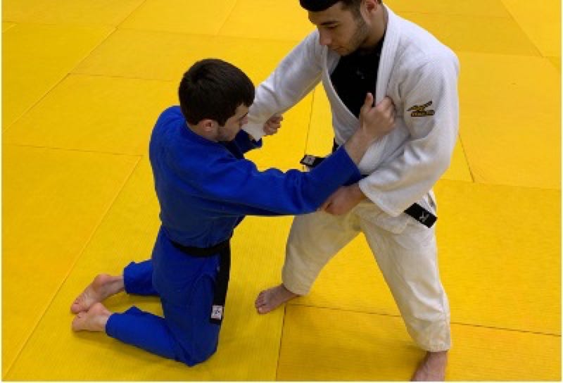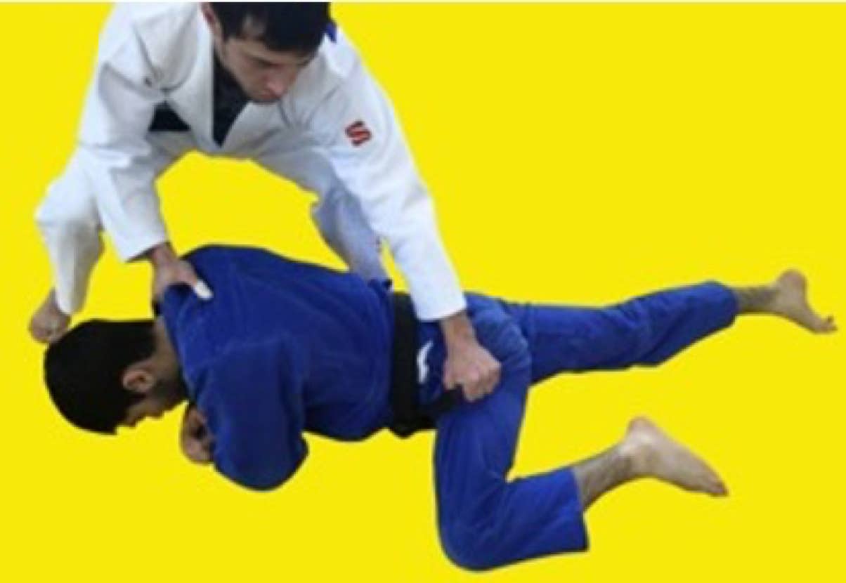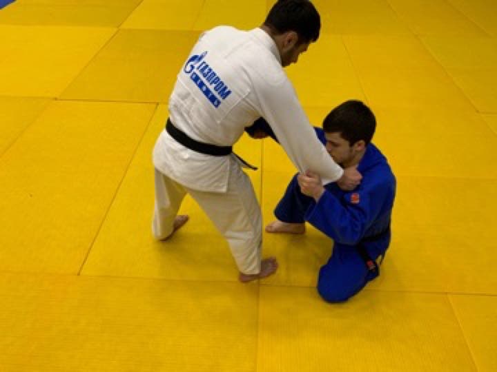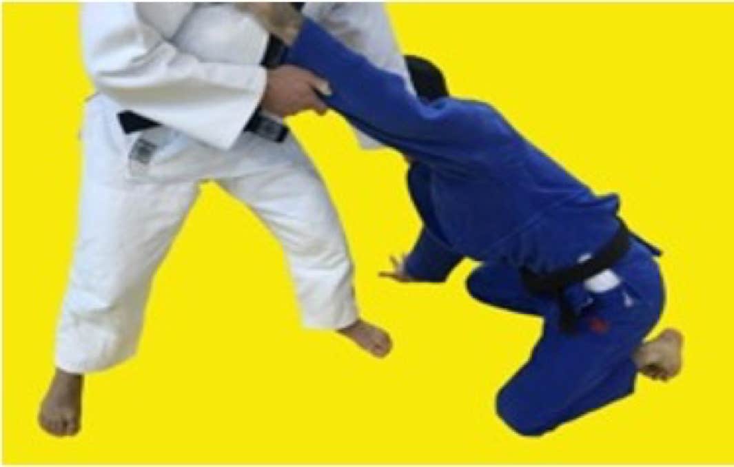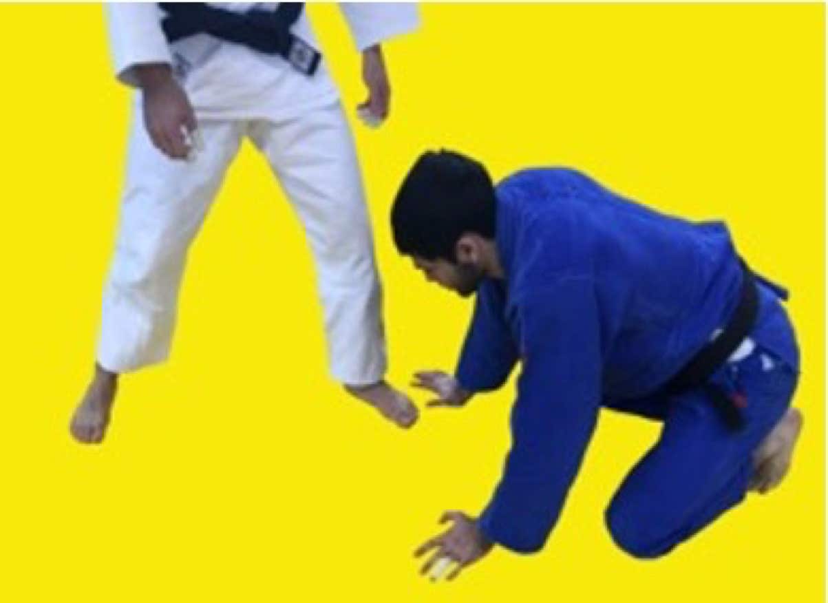 However, if white does not attack immediately, then the referee must call mate! Athlete on the knees (blue) cannot grab the legs to defend the throw with his arms, if this happens, shido will be given.