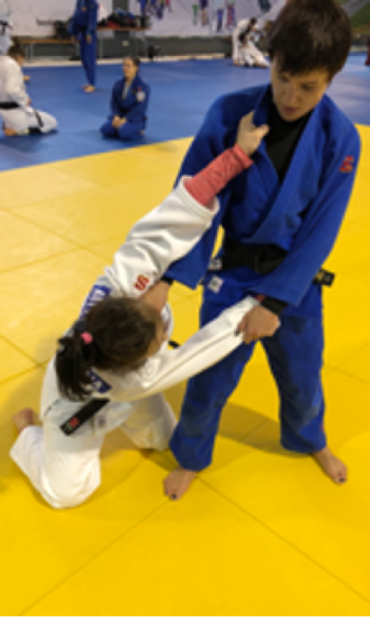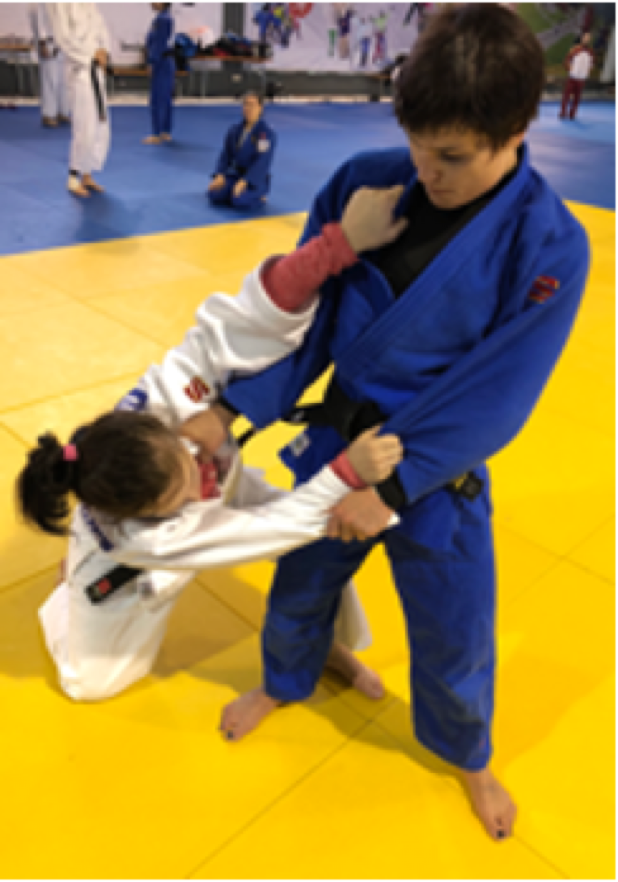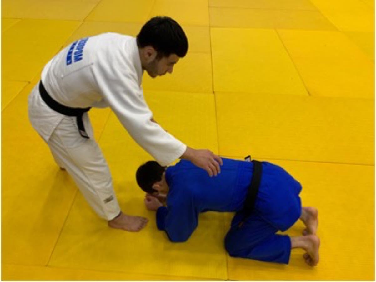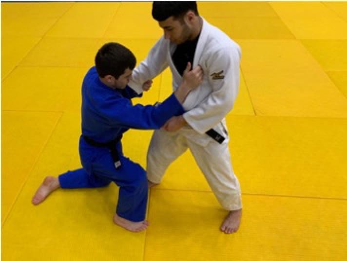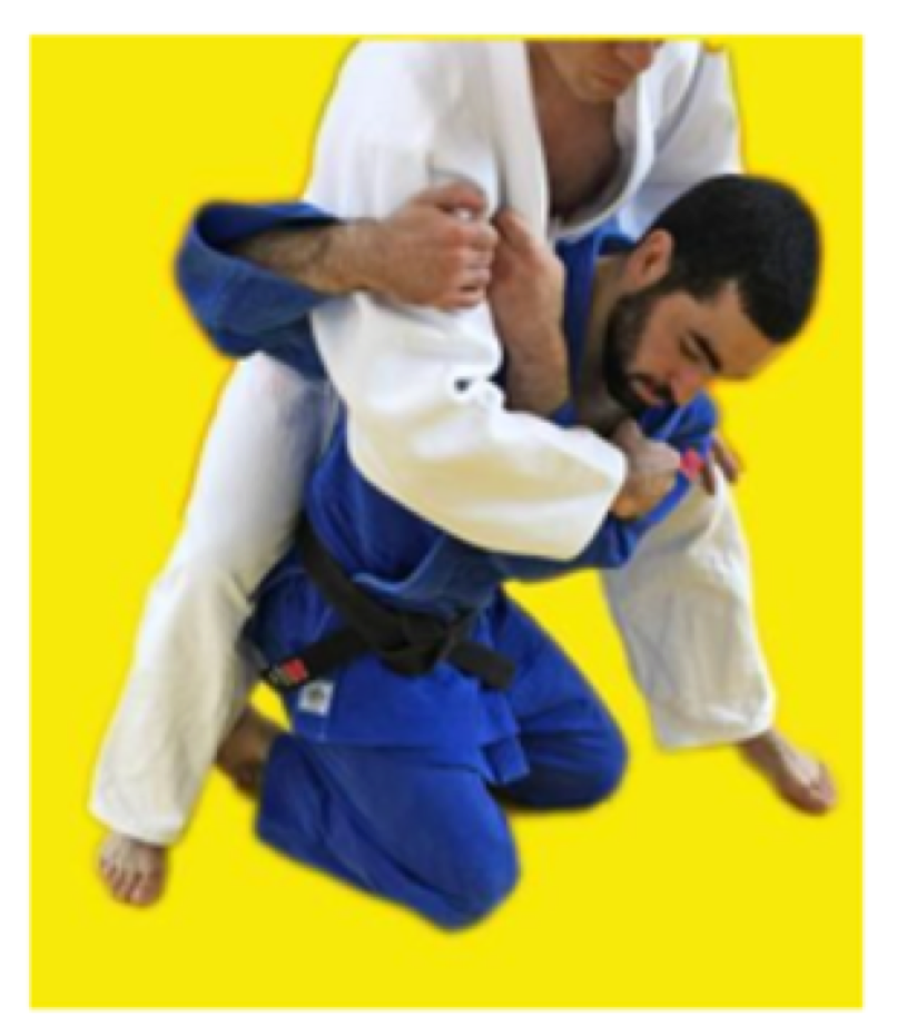 However, if white does not attack immediately, then the referee must call mate! Athlete on the knees (blue) cannot grab the legs to defend the throw with his arms, if this happens, shido will be given.