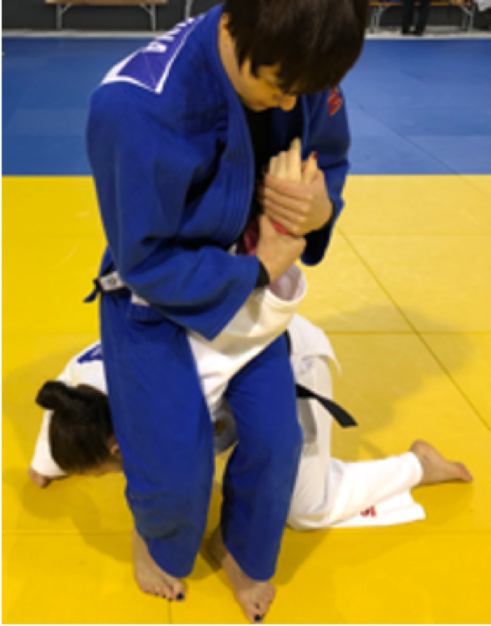 Grip control from standing athlete (white): we still consider athlete on the knees (blue) in tachi-waza and consequently tachi-waza regulation would be applied.